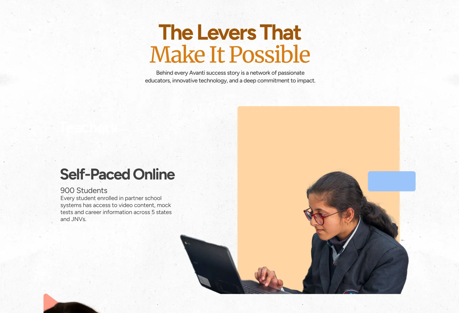 A website that aims to elevate Avanti’s mission - pairing powerful student stories with a warm visual language inspired by the world of learning.